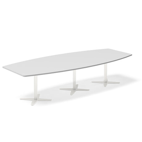 Konferencebord DNA, Lysgrå 3200x1200 mm bådformet, Hvid understel