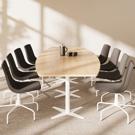 Konferencebord DNA, Eg 2600x1200 mm bådformet, Hvidt understel