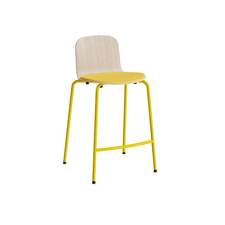 Barstol ADD Hvidpigmenteret eg laminat, sæde i gult tekstil, gule ben