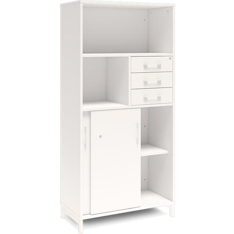 Kontorskab DNA, 800x1660 mm, Hvid/Hvid, skydedør og skuffemodul 4A4/2A4
