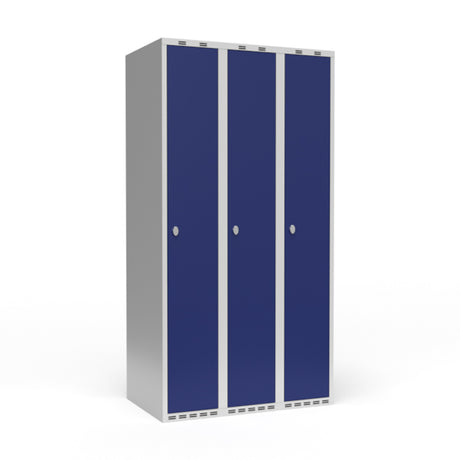 Garderobeskab 3x300 mm Lige tag 1 rum i højden Blå dør Greb for hængelås