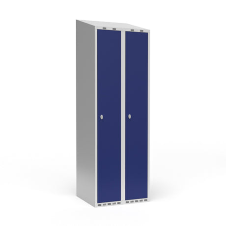 Garderobeskab 2x300 mm Skråt tag 2 rum i højden Blå dør Greb for hængelås