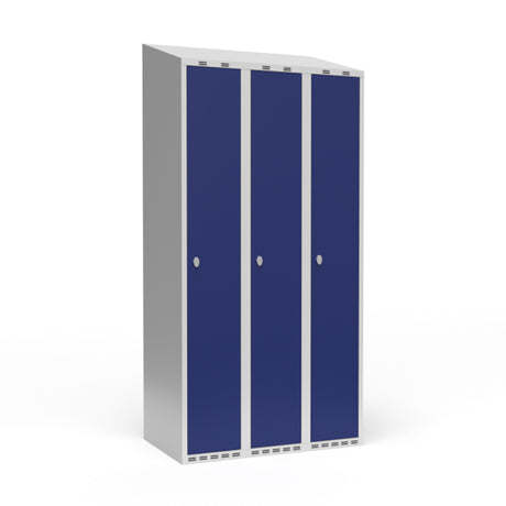 Garderobeskab 3x300 mm Skråt tag 1 rum i højden Blå dør Greb for hængelås
