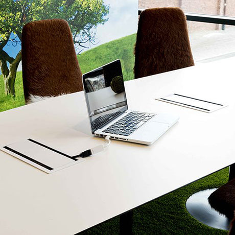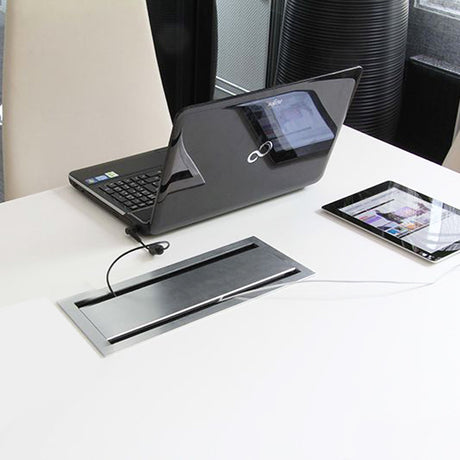 Kabelholder Halfpipe til bord, Alugrå Justerbar