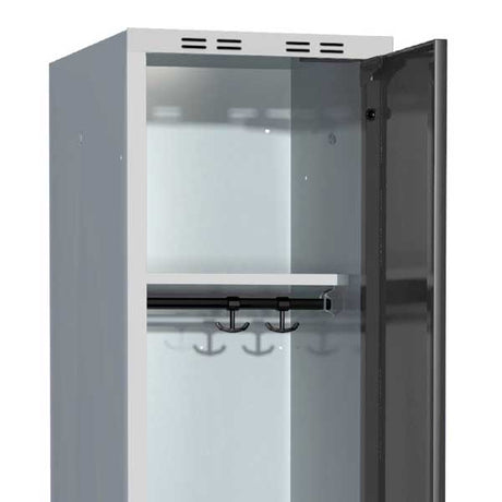 Garderobeskab 3x300mm m/lige tag, antracit dør med cylinderlås og sokkel