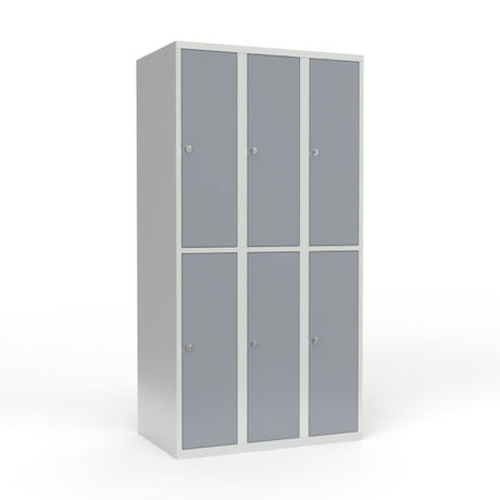 Skoleskab 3x300 Lige tag 2 rum i højden Grå ståldør Greb for hængelås