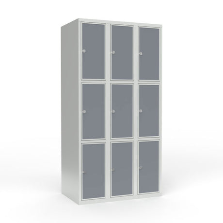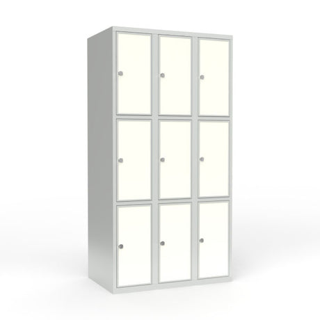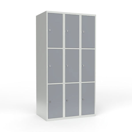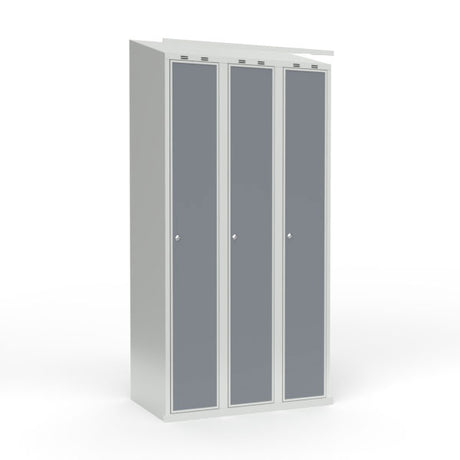 Skoleskab 3x300 Lige tag 3 rum i højden Lys grå laminatdør Greb for hængelås