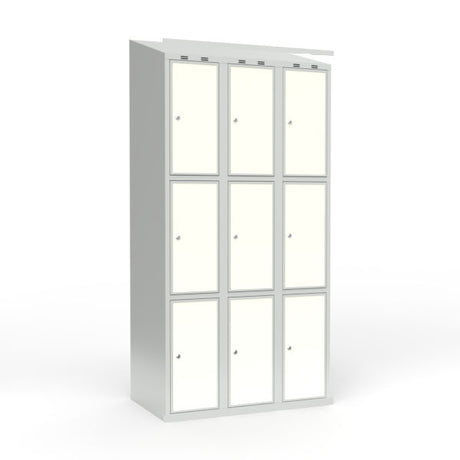 Skoleskab 3x300 Lige tag 3 rum i højden Hvid laminatdør Greb for hængelås