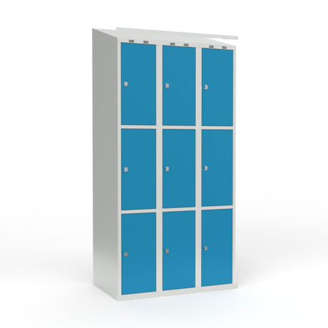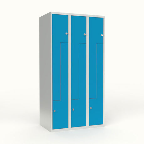 Skoleskab 3x300 Lige tag, Z-dør Lys blå ståldør Greb for hængelås
