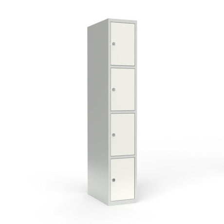 Skoleskab 1x400 Lige tag 4 rum i højden Hvid ståldør Greb for hængelås