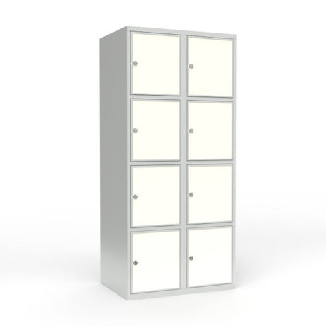 Skoleskab 2x400 Lige tag 4 rum i højden Hvid laminatdør Greb for hængelås