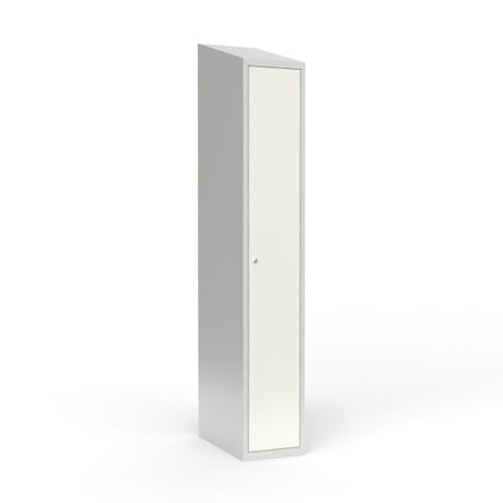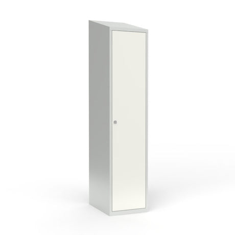Skoleskab 1x400 Skråt tag 1 rum i højden Hvid ståldør Greb for hængelås