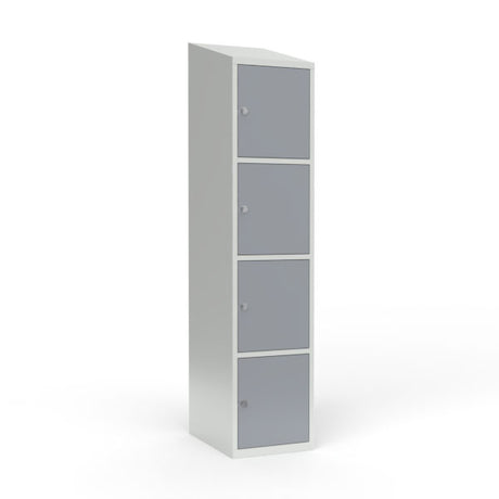 Skoleskab 1x400 Skråt tag 4 rum i højden Grå ståldør Greb for hængelås