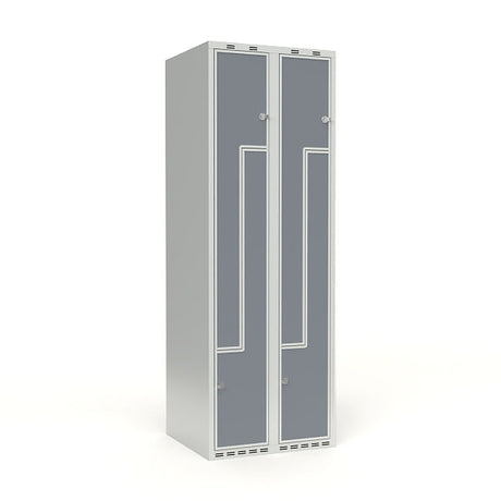Skoleskab 2x300 Lige tag, Z-dør Grå laminatdør Greb for hængelås