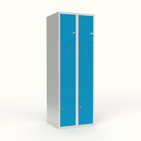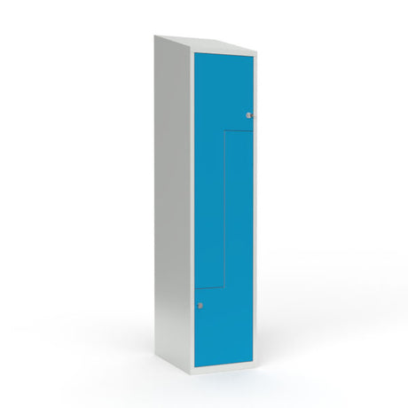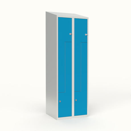 Skoleskab 2x300 Skråt tag, Z-dør Lys blå ståldør Greb for hængelås