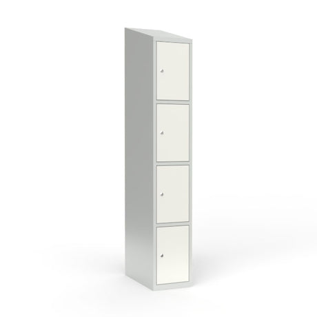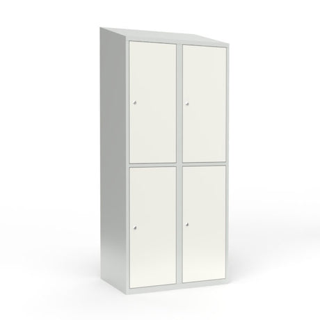 Skoleskab 1x300 Skråt tag 4 rum i højden Hvid ståldør Cylinderlås