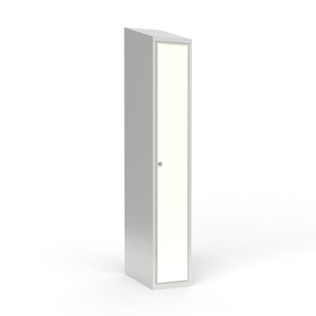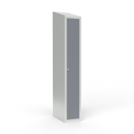 Skoleskab 1x300 Skråt tag 1 rum i højden Lys grå laminatdør Greb for hængelås