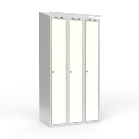 Skoleskab 1x400 Lige tag 3 rum i højden Hvid laminatdør Greb for hængelås