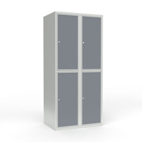 Skoleskab 2x400 Skråt tag 4 rum i højden Lys grå laminatdør Greb for hængelås