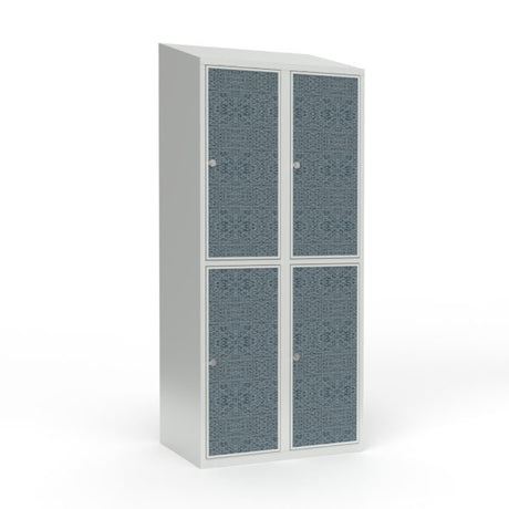 Skoleskab 2x400 Skråt tag 4 rum i højden Lys blå ståldør Greb for hængelås