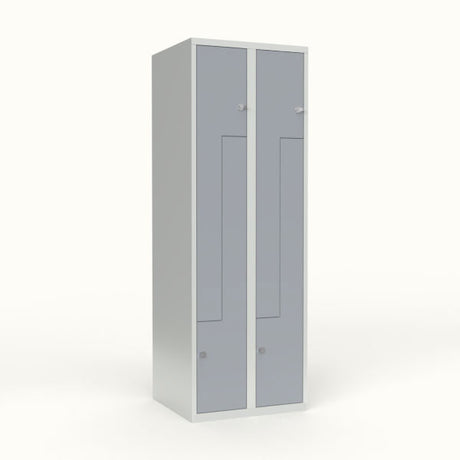 Skoleskab 2x300 Lige tag, Z-dør Grå ståldør Greb for hængelås