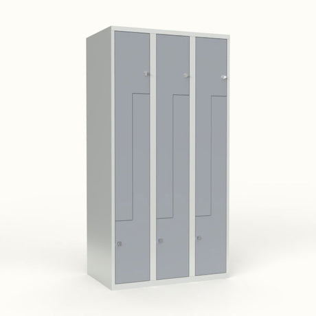 Skoleskab 3x300 Lige tag, Z-dør Grå ståldør Greb for hængelås