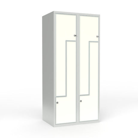 Skoleskab 2x400 Lige tag, Z-dør Hvid laminatdør Greb for hængelås