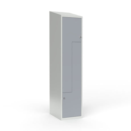 Skoleskab 1x400 Skråt tag, Z-dør Grå ståldør Greb for hængelås