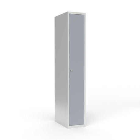 Skoleskab 1x400 Lige tag 1 rum i højden Hvid laminatdør Greb for hængelås