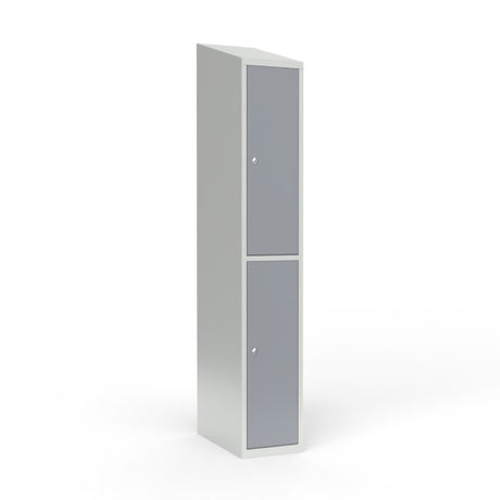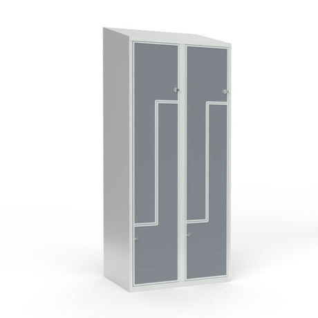 Skoleskab 2x400 Skråt tag, Z-dør Grå laminatdør Greb for hængelås