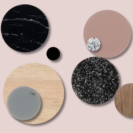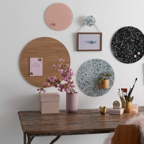 Cirkel 35 cm. Sort med hvid Terrazzo Magnetisk glastavle