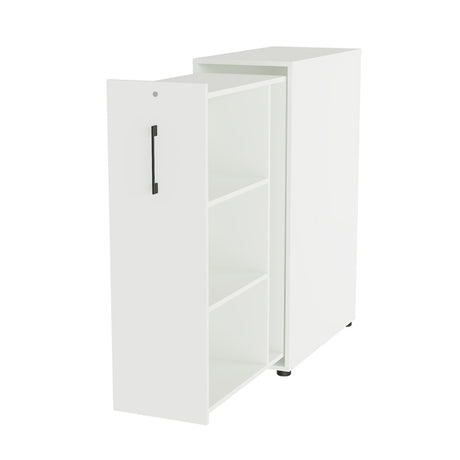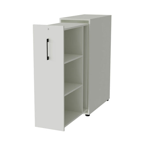 Vores kollektion af bogreoler og kontorskabe inkluderer flere modeller af Towerskab DNA A9 i lys grå med forskellige håndtag – alugrå, sort og hvidt. Du kan vælge mellem højre- eller venstrevendte skabe for bedre tilpasning til dit kontorlayout. Denne fleksibilitet gør det nemt at organisere dokumenter og materialer effektivt.