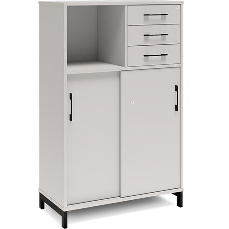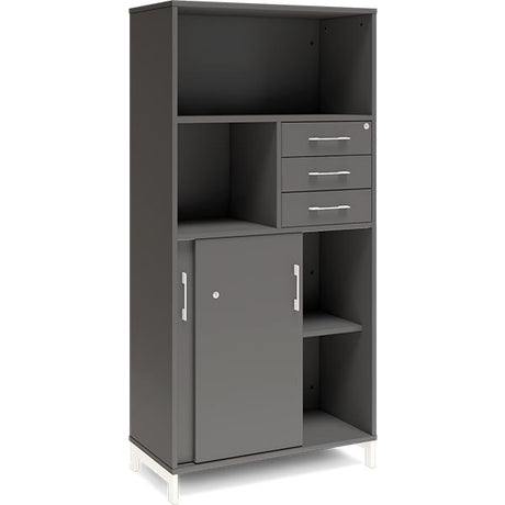 Kontorskab DNA, 800x1275 mm, Lys grå/Sort, skydedør og skuffemodul 3A4/2A4