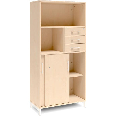 Kontorskab DNA, 800x1275 mm, Birk/Hvid, skydedør og skuffemodul 3A4/2A4
