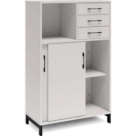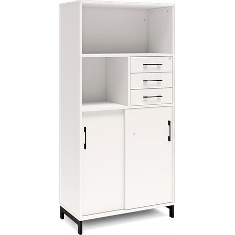 Kontorskab DNA, 800x1275 mm, Hvid/Sort, skydedør og skuffemodul 3A4/2A4
