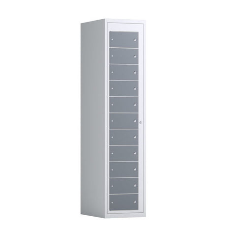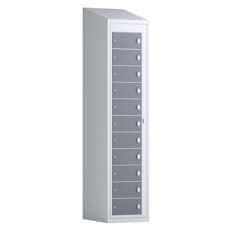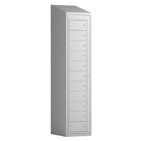 Tøjudleveringsskab 1x11 rum med skråt tag og lys grå døre med cylinderlås