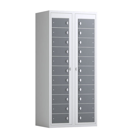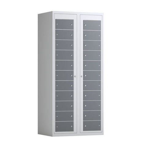 Tøjudleveringsskab 2x11 rum med lige tag og lys grå døre med cylinderlås