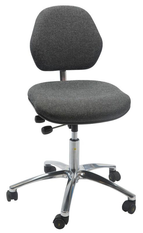 Industristol Aktiv ESD, grå stof, høj, med glidesko, fodring