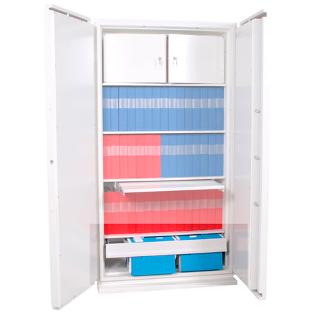 Vores sortiment omfatter blandt andet Simplex elektroniske kodelåse, låsbare indsatsdele i forskellige størrelser samt praktiske hylder og udtræksbare arbejdsplatforme. Disse løsninger gør det let at organisere dit værdifulde indhold, samtidig med at du øger sikkerheden.