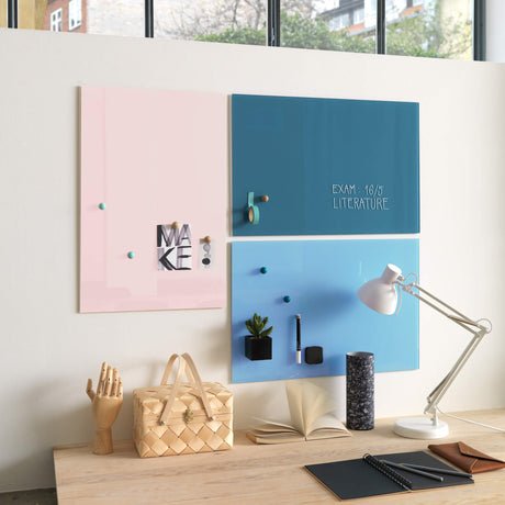 60 x 80 cm. Mat glas hvid/Egefiner Magnetisk tavle