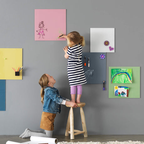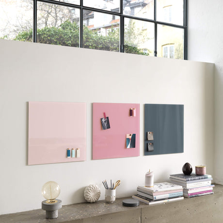 60 x 80 cm. Mat glas grå/Egefiner Magnetisk tavle