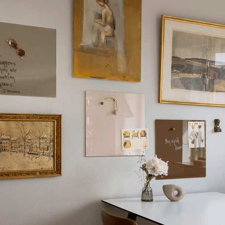 60 x 80 cm. Mat glas guld/Egefiner Magnetisk tavle