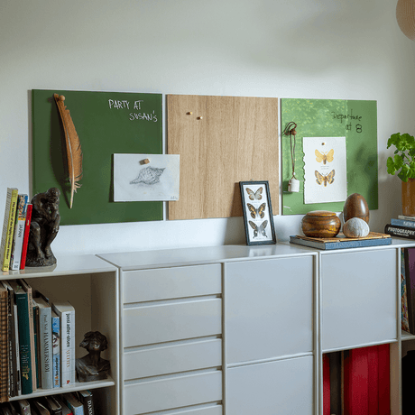 40 x 60 cm. Mat glas hvid/Egefiner Magnetisk tavle
