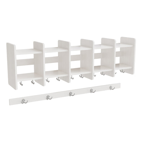 Garderobeindretning Eira Light, overhylde 5 pladser, 280 mm rumbredde, hvidpigmenteret krydsfinér