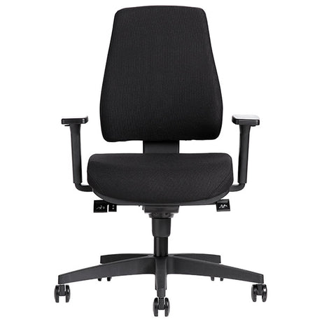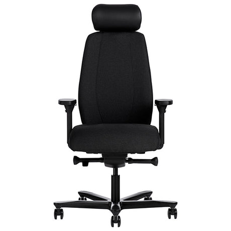 Kontorstol KAB seating K4 Premium, White-Line Sort fighter inkl. armlæn og nakkestøtte i sort skind