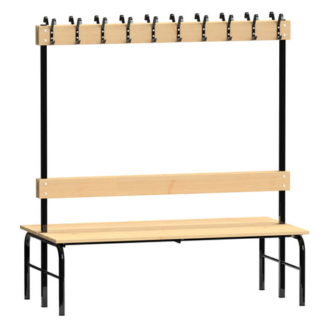 Garderobestativ Dobbeltsidet, sort stel og bænksæde i birk, bredde 2000 mm