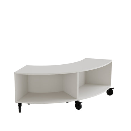 Reol Stig i hvid laminat 2-rum buet 90° med hjul, udv. ryg