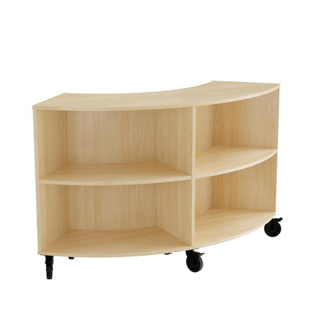 Reol Stig i birk laminat 4-rum buet 60° med hjul, indv. ryg
