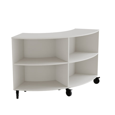 Reol Stig i hvid laminat 4-rum buet 60° med hjul, udv. Ryg