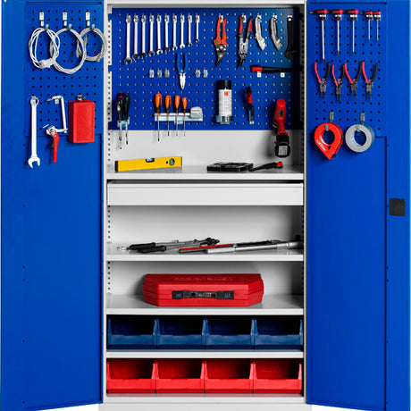 Værktøjsskabe er essentielle i ethvert værksted, hvor orden og sikker opbevaring af værktøj er vigtigt. Hos Officely.dk finder du et bredt udvalg af værktøjsskabe fra GBP, der kombinerer holdbarhed med praktisk design. Du kan vælge mellem klassiske skabe i RAL7004 eller skabe med flere funktionelle løsninger som skuffesektioner og udtræksskuffer.